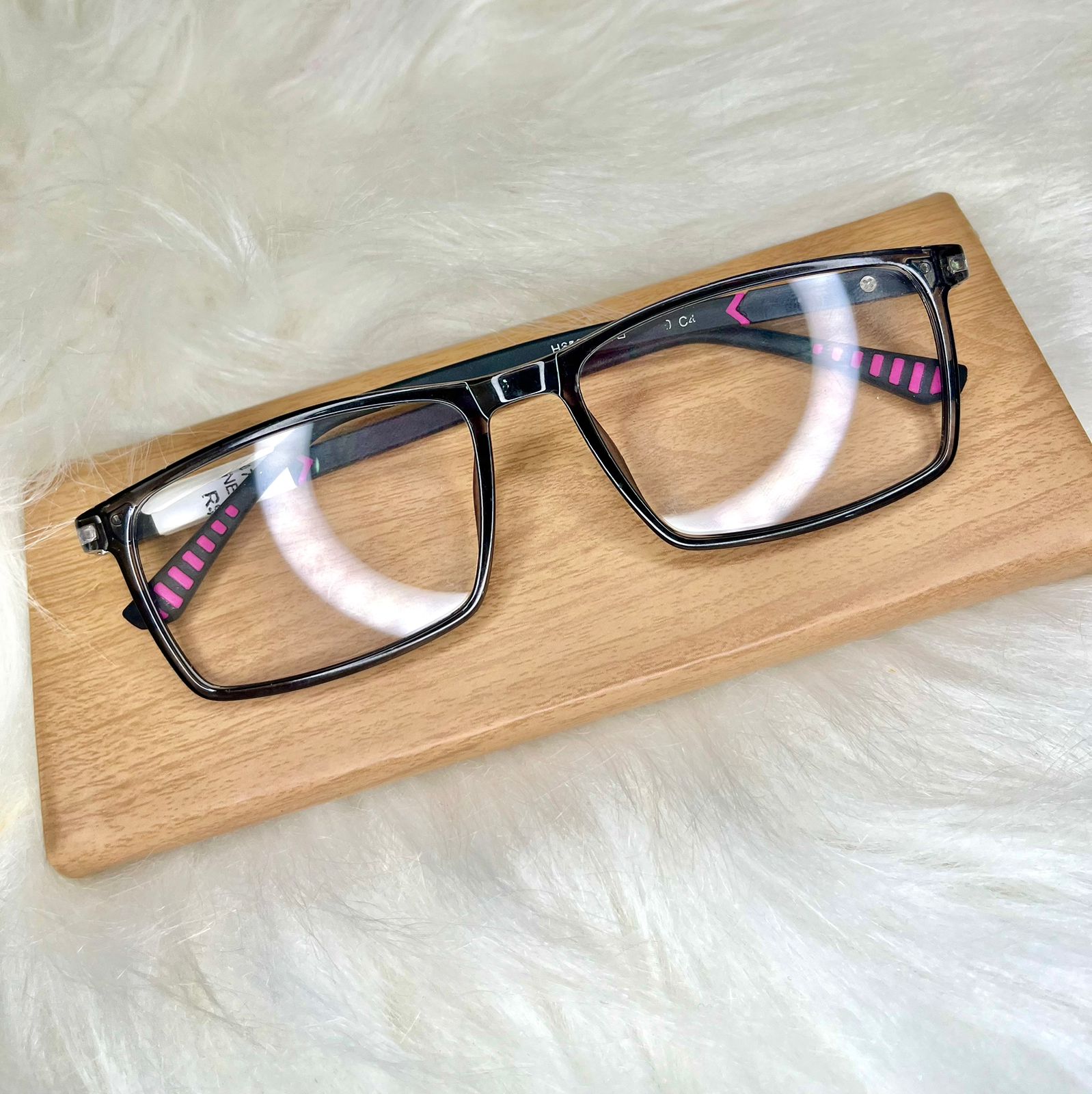 Armação em acetato, na cor preta com transparência, hastes na cor preta com detalhes em rosa. É uma peça leve e confortável. REF.: H6507, TAM.: 53.
