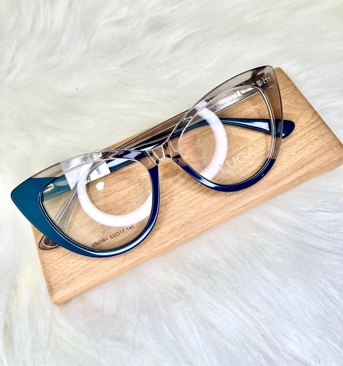 Armação toda em acetato feminina, na cor azul com grafite , formato em gatinho, peça linda e corfortavel , REF:VS2381 TAM:53-17