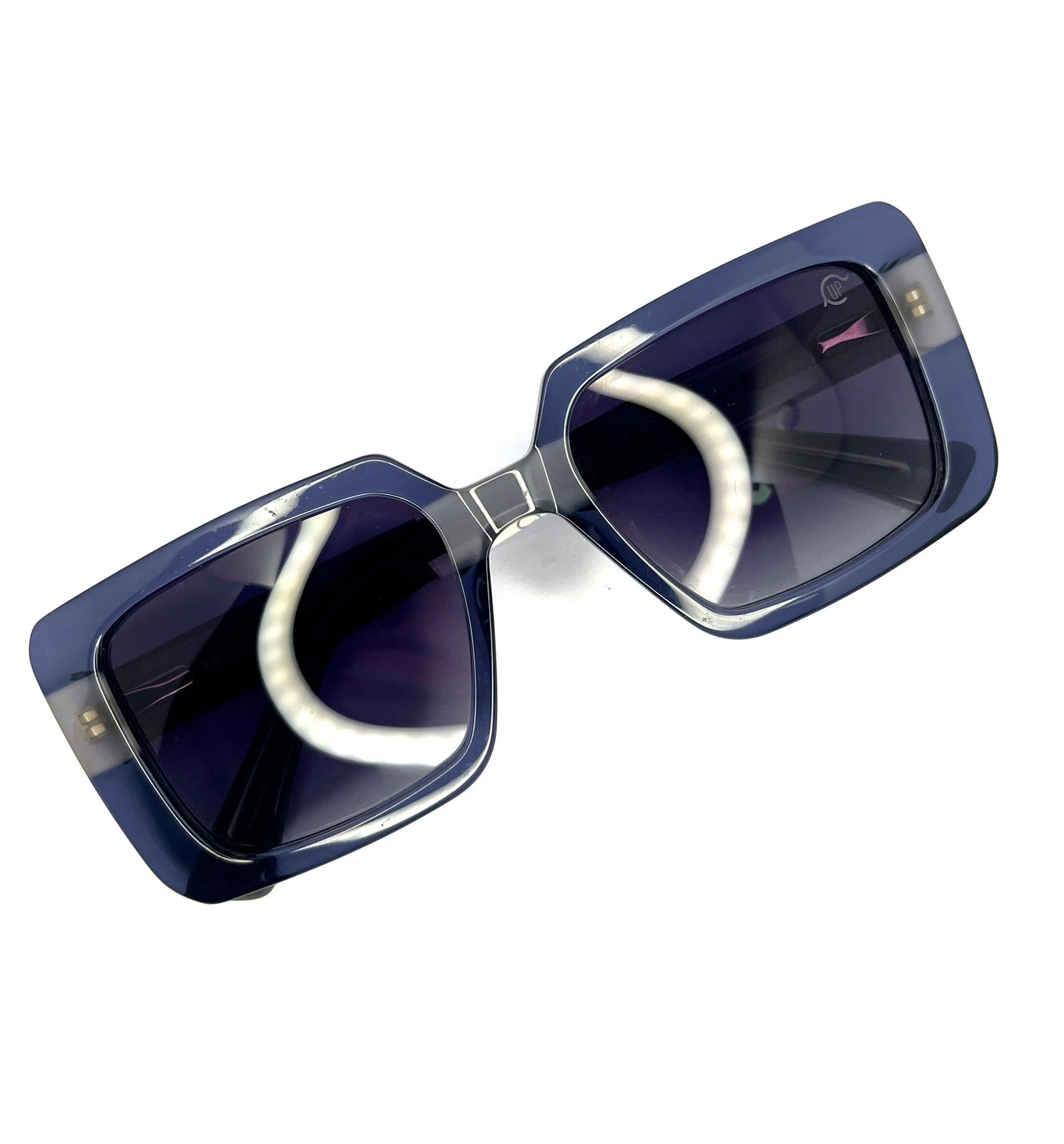 Óculos de sol feminino, modelo em acetato quadrado, na coloração de azul fosco com transparência e detalhes em cinza com transparência. É uma peça confortável. TAM.: 51, REF.: VLF6804