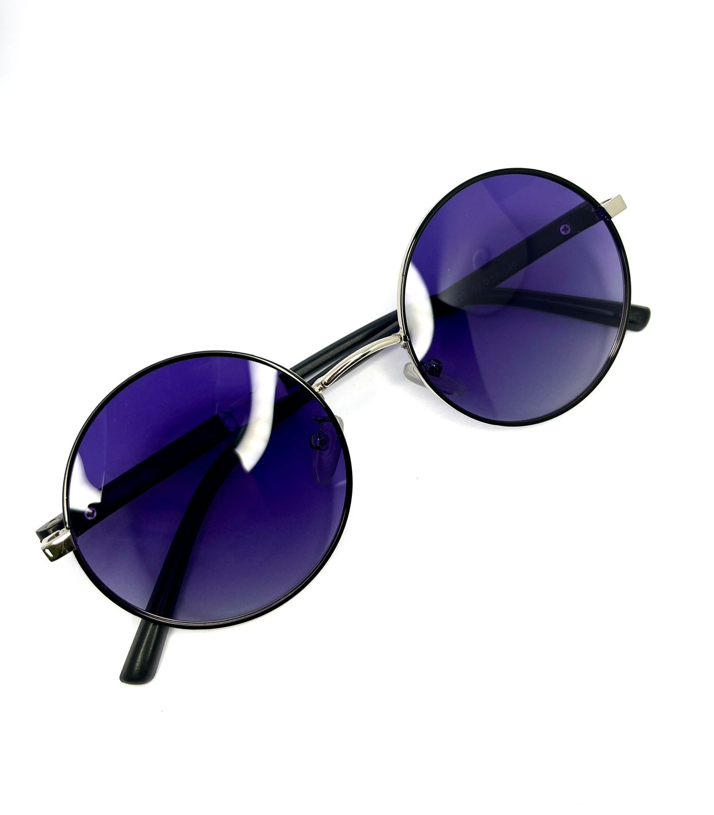 Óculos de sol feminino, modelo em metal e redondo. Possuí a coloração em cinza com detalhes em preto, hastes na cor preta e com detalhes em cinza. É uma peça leve e confortável. TAM.: 52, REF.: 9125.