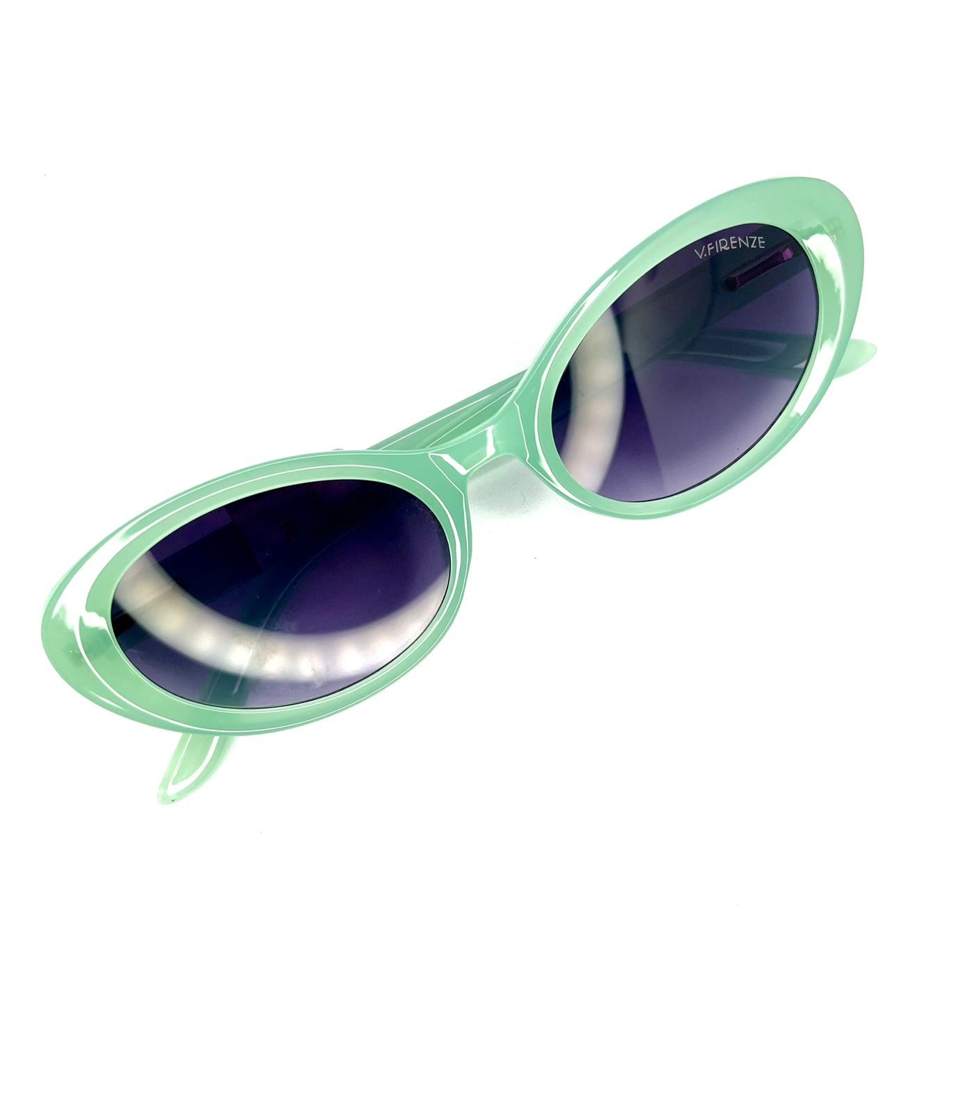 Óculos de sol feminino, modelo oval, na coloração verde claro e possuí lentes na coloração de cinza claro com degradê. É uma peça leve e confortável. TAM.: 51, REF.: VF1510.
