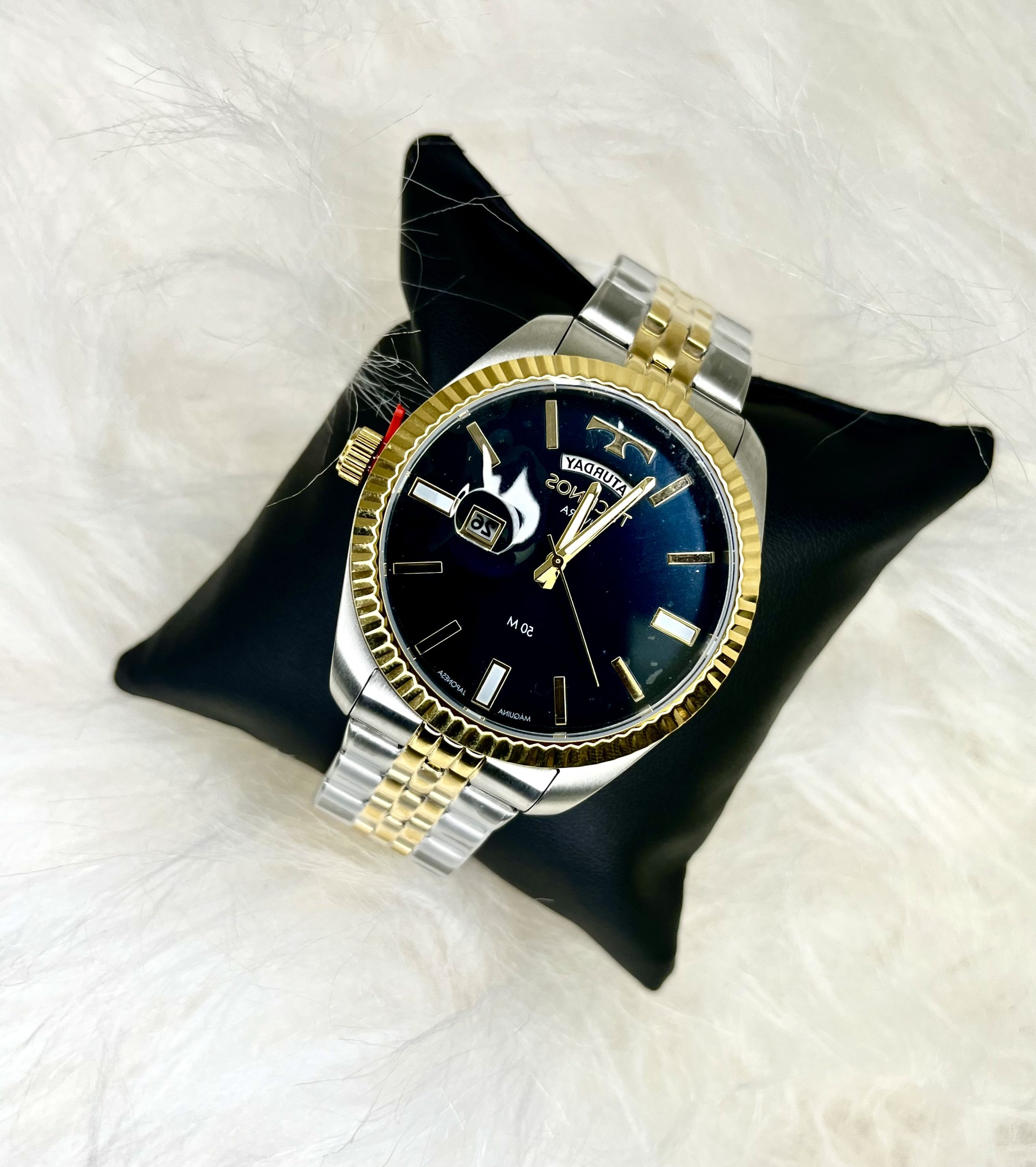 Relógio original TECHNOS masculino em aço prata com detalhes em dourado.