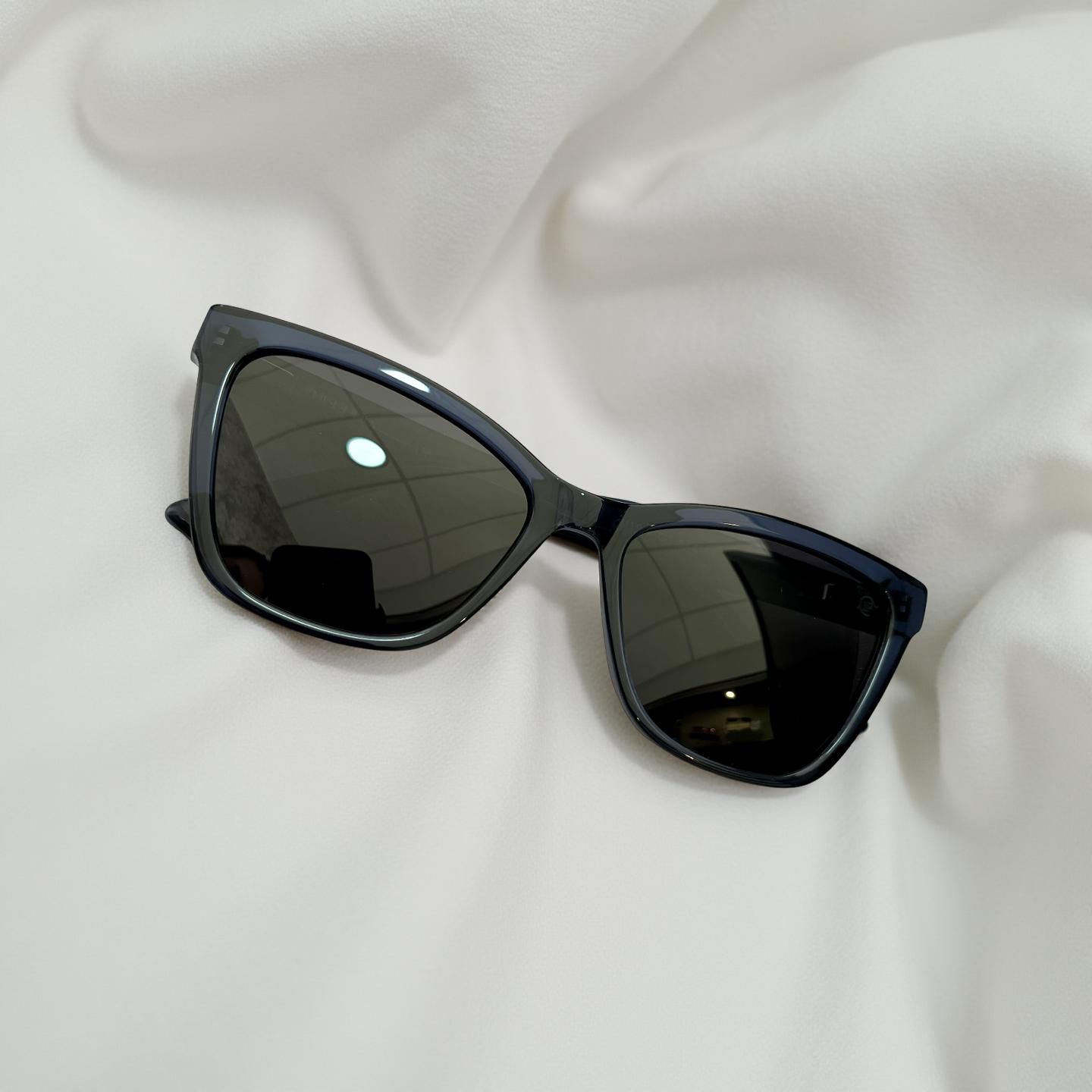 OCULOS DE SOL EM ACETATO , NA COR PRETO AZULADO .