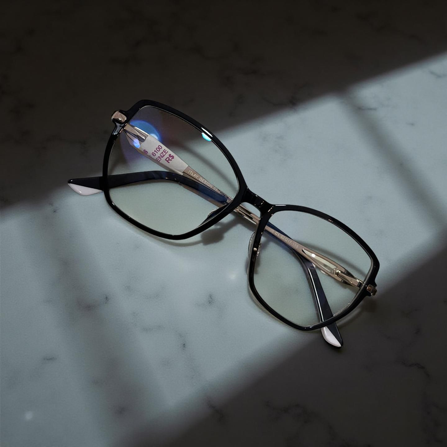ARMAÇAO EM ACETATO , COM HASTES EM METAL, NA COR PRETO.